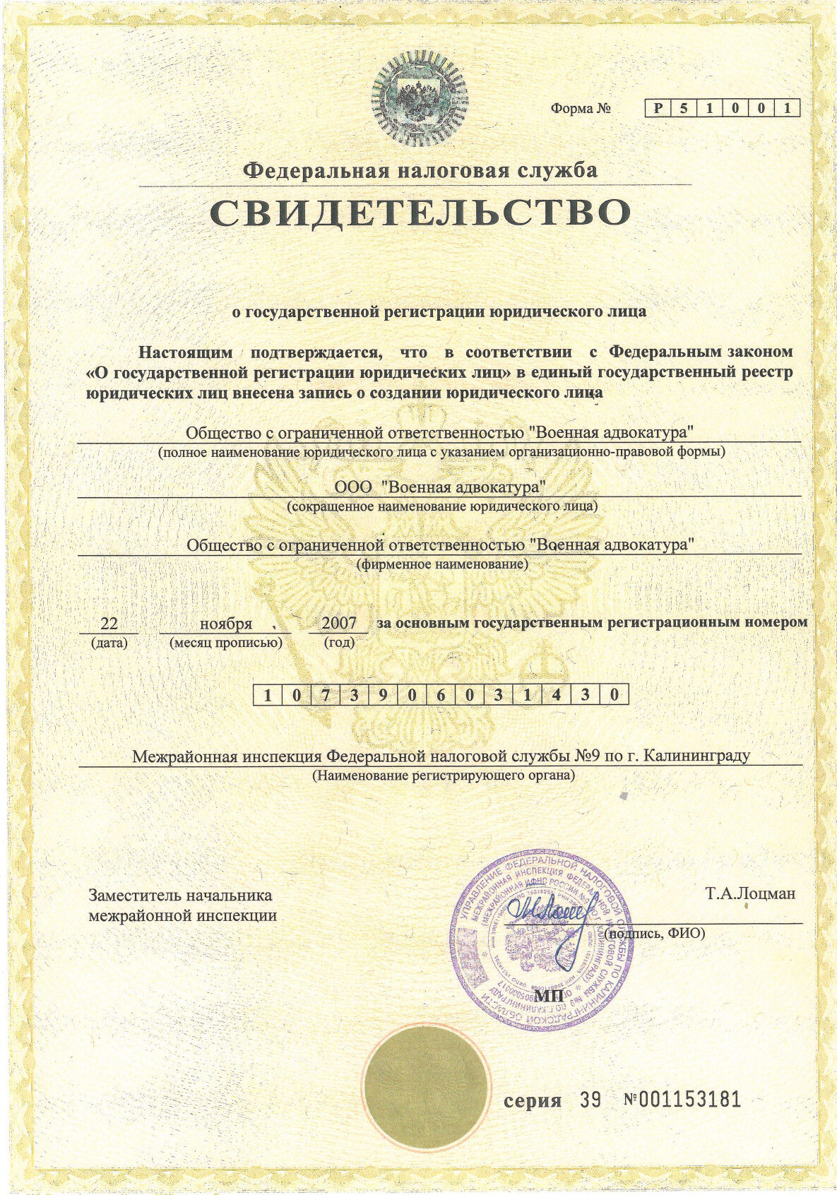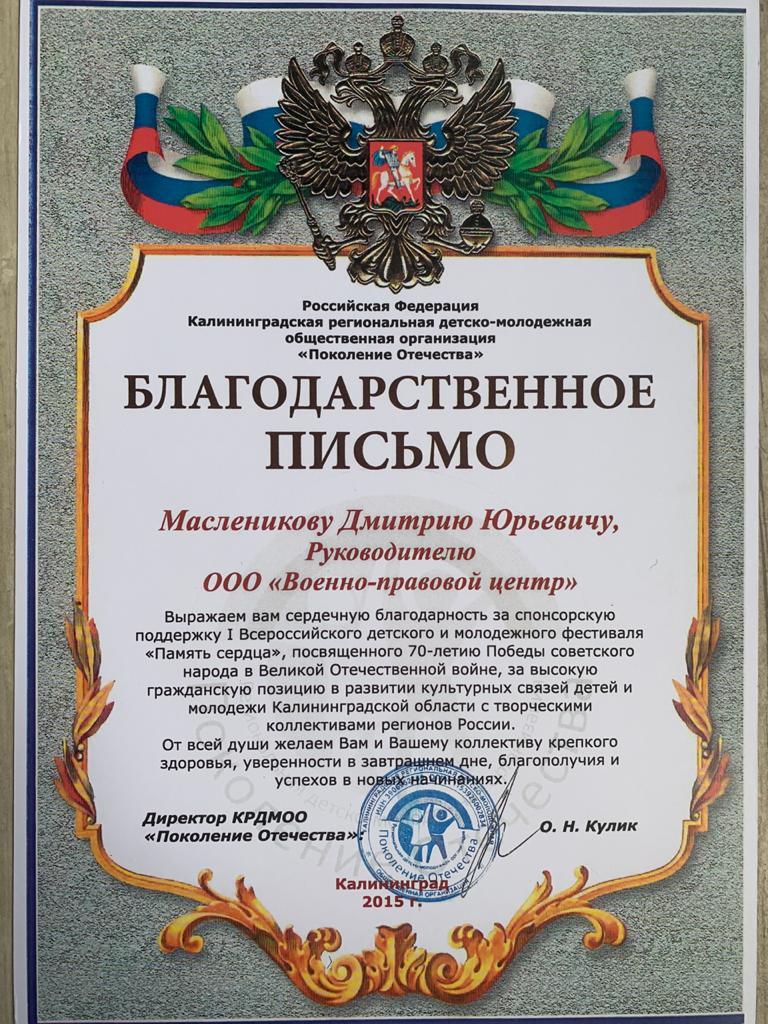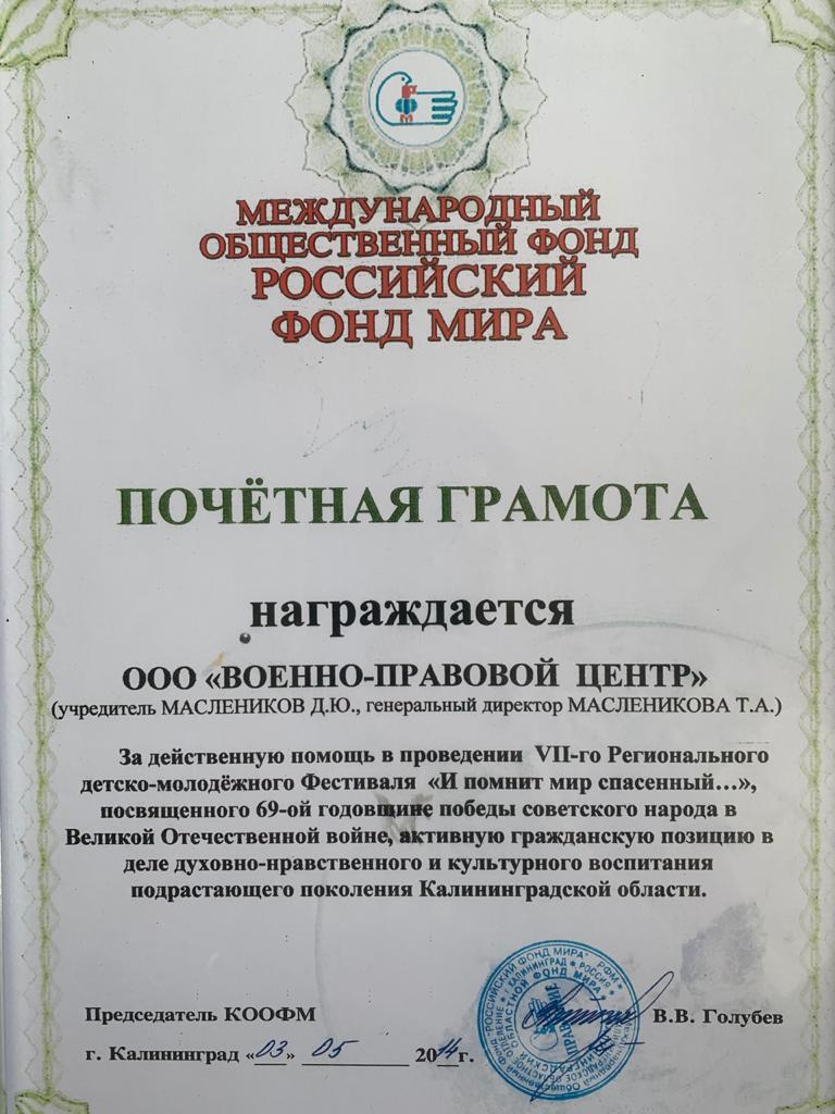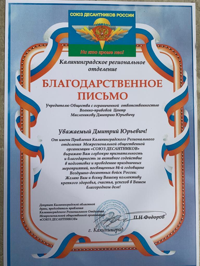 г. Калининград, Ленинский проспект, 131 ( Бизнес Центр «Панорама»)Основателем компании является военный юрист с 15-летним опытом -